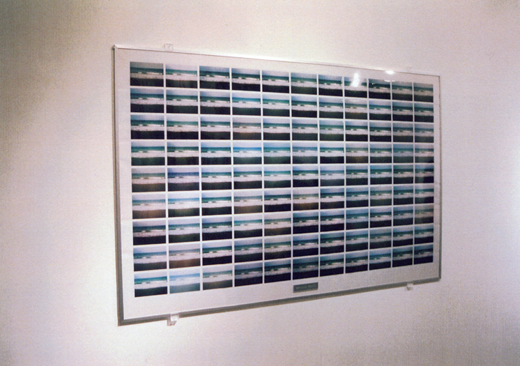 同一の1コマのネガからL版のサービスプリントを複数、作製する。(この作品では同時プリント時[現像時]のプリントを含め100枚作製。ネガは作者が撮影した海の写真を使用。)