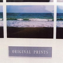 仕上がったプリントは作製順に並べて額装する。(この作品では同時プリント時のプリントを除いた99枚を額装。) 「ORIGINAL PRINTS」と文字の入ったプレートを付け、展示。