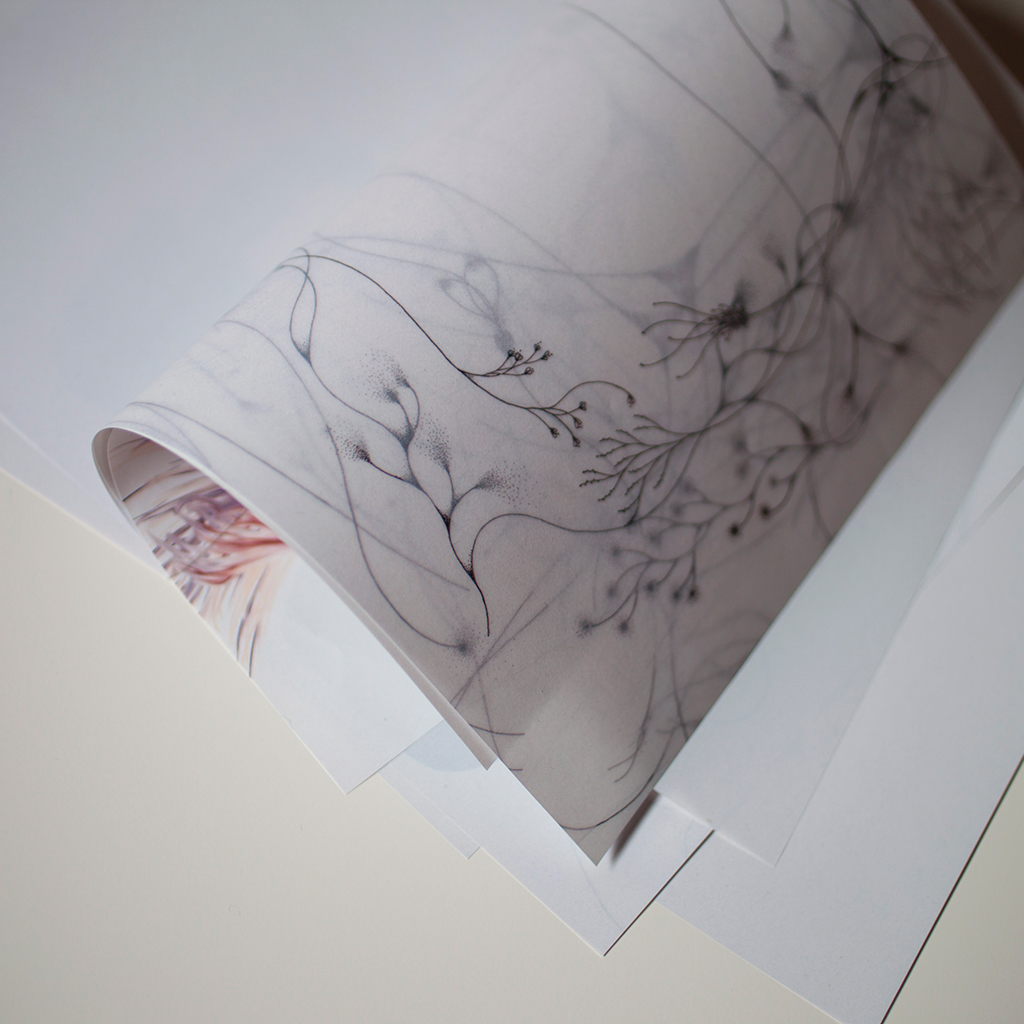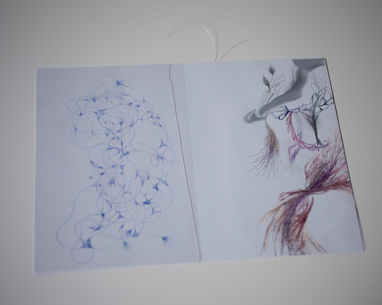 ドローイングと写真の切り抜き画像などで構成されています。
