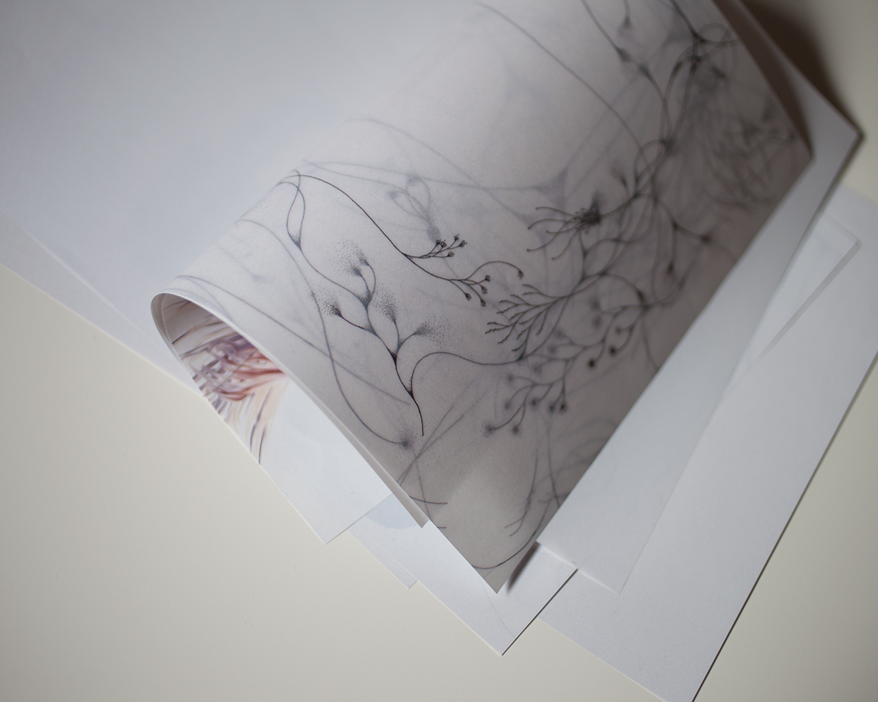 5枚の紙がそれぞれに独立していますが半分に折ると冊子状の形を為します。